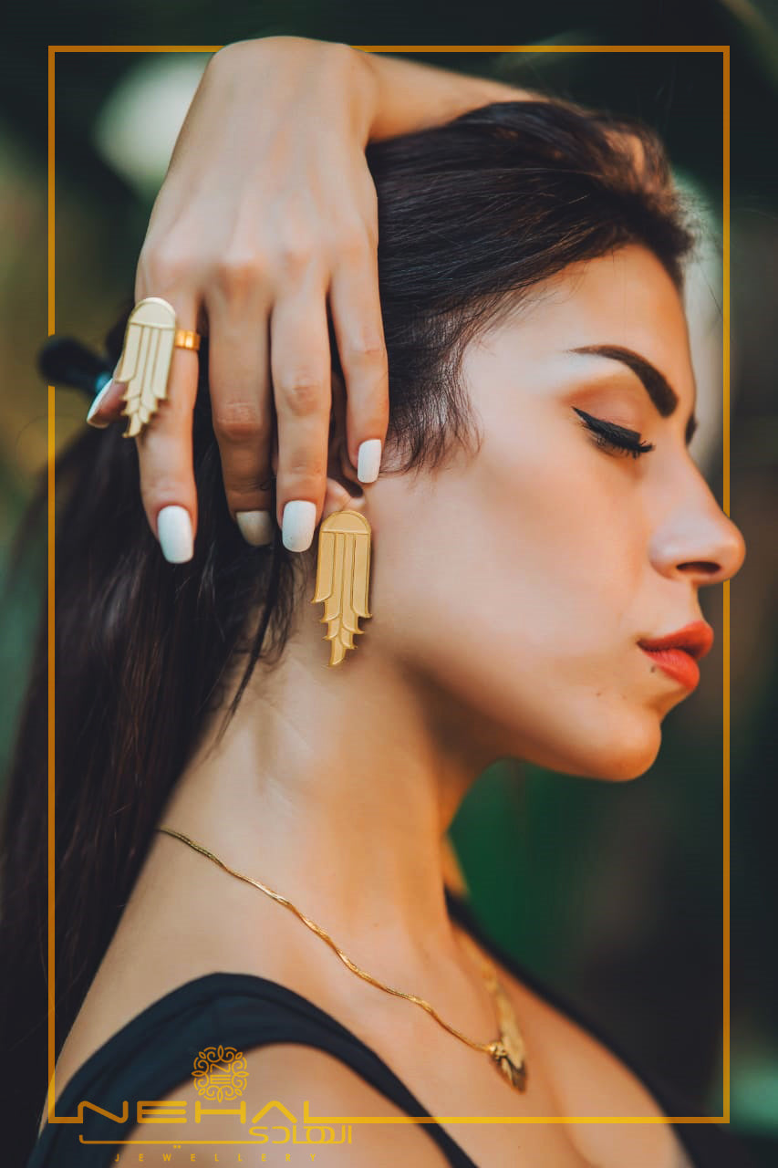 Art Deco Set A true work of art inspired by the golden era of elegance. With bold geometric lines and refined details, this earring and ring duo embodies timeless sophistication and statement style.